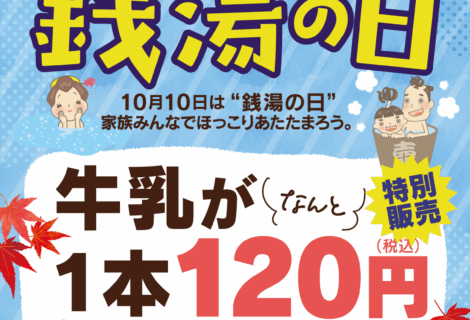 ホーム お知らせ・イベント お知らせ・イベント 2025/10/9 10月10日は銭湯の日! あす10月10日は銭湯の日!牛乳特売実施 みんな大好き♡おふろ上がりの牛乳が1日限りの特別価格! 余熱館ささおかで遊んだ後は牛乳飲んでゆっくりしよう! 2025/10/1 2025年10月カレンダー 10月の余熱館も楽しい! ●10/10(金)は銭湯の日! 銭湯の日イベントとして、館内の自販機の牛乳を特別価格にて販売! 年に一度の特別プライス♪おふろ上がりは腰に手をあて、Let’sぐびぐび♪ ●10/21 …[続きを読む →] 2025/9/12 【3/31(火)まで】越前若狭御湯印めぐり 越前若狭御湯印めぐり開催中! 福井県内10店舗の越のゆグループをめぐって御湯印札を集めよう! みごと満願達成された方にはもれなく「満願タオル」プレゼント(*´ω`) 抽選で豪華海の幸・山の幸やご招待券が当たる! 御湯印帖 …[続きを読む →] 2025/9/8 9/10(水)営業再開のおしらせ いつも余熱館ささおかをご利用いただき、誠にありがとうございます。 度重なる休館により、お客様には大変ご迷惑をおかけいたしました。 予定していた日程よりも工事期間が短縮されましたので、以下の日程にて営業を再開いたします。 …[続きを読む →] 2025/8/27 9/1~9/12 臨時休館のご案内 いつも YONETSU-KANささおかをご利用いただき、誠にありがとうございます。 この度高温水配管に漏水が発生し、それに伴う補修工事のため、下記の期間を臨時休館とさせていただきます。 度重なる休館で、ご利用の皆様には大 …[続きを読む →] 2025/8/6 忘れ物のお問い合わせについて 連日のご来館、誠にありがとうございます。 プール利用者増加に伴い、お忘れ物のお問い合わせが大変多くなっております。 誠に勝手ながら、土日祝はお電話での忘れ物対応を休止させていただきます。 お忘れ物のお問い合わせにつきまし …[続きを読む →] 2025/7/23 【重要】回数券の利用期限について 平素より余熱館ささおかをご利用いただきありがとうございます。 当館が発行する回数券につきまして、2025年7月より利用期限を以下の通り設定させていただきます。 利用期限が過ぎた回数券はご利用いただけません。また、ご返金・ …[続きを読む →] 2025/7/14 2025年7月カレンダー 7月イベントのお知らせ お待たせいたしました!7/14(月)より全館営業再開いたします。 余熱館の夏はこれから始まる! ●お食事処のメニューがリニューアル! ささの家のメニューが新しくなりました!既存の人気メニューの他、 …[続きを読む →] 2025/7/11 営業再開のお知らせ 平素より余熱館ささおかをご利用いただき、誠にありがとうございます。 2025年4月1日より修繕工事のため休館させていただいておりましたが、修繕が完了しましたので以下の通り営業を再開させていただきます。 営業再開(お風呂 …[続きを読む →] 2025/6/30 休館期間延長のお知らせ 平素より余熱館ささおかをご利用いただき、誠にありがとうございます。 当館では、2025年4月1日より6月30日までの予定で改修工事のため休館させていただいておりましたが、工事の進行に遅れが生じたため、休館期間を延長させて …[続きを読む →] 12345...1020...