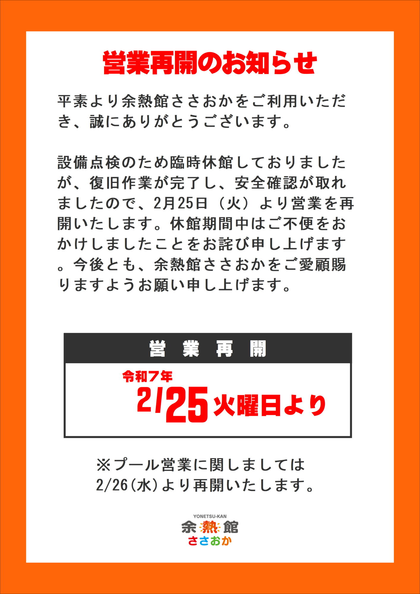 2025.02余熱営業再開のお知らせ