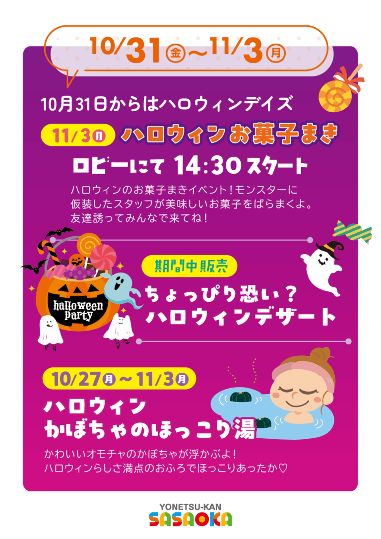 ②10/27(月)~11/3(月)ハロウィンかぼちゃのほっこり湯