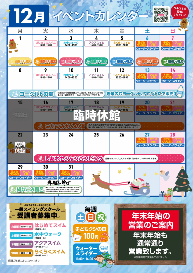 冬休みは余熱館ささおかで過ごしませんか?温水プールもおふろも通常通り営業!